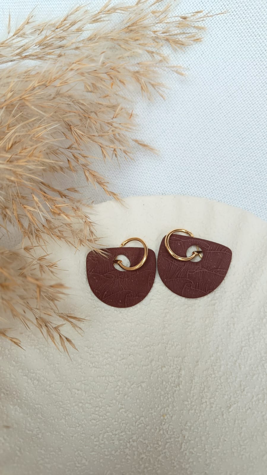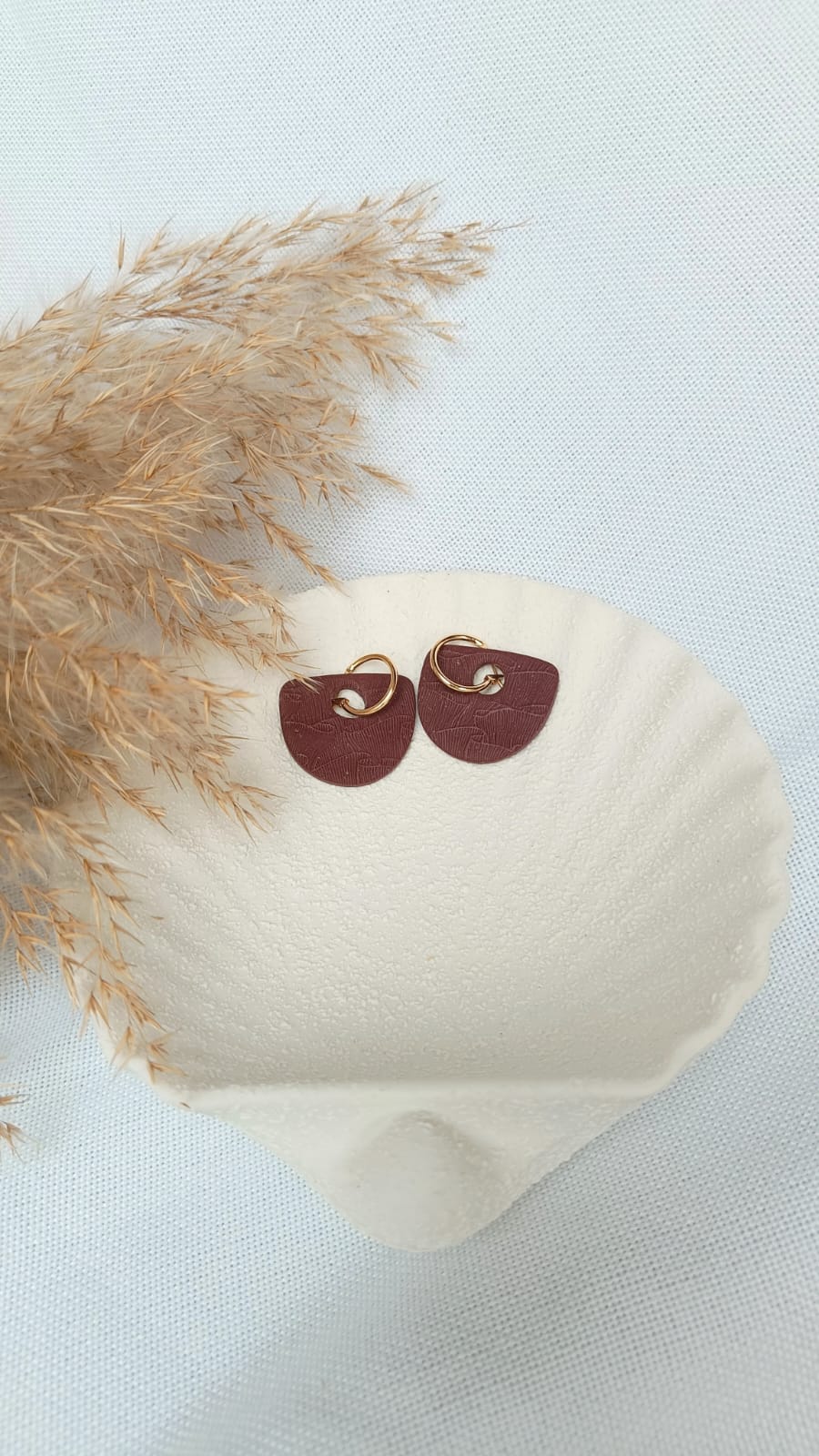 Schlicht und doch besonders – Amber Whisper vereint modernes Design mit einem Hauch Naturverbundenheit. Der warme Bordeauxton trifft auf sanft geschwungene goldene Creolen und verleiht jedem Look ein stilvolles Herbst-Statement. Die zarte Blattstruktur im Clay bringt Tiefe und Charakter in jedes einzelne Stück.