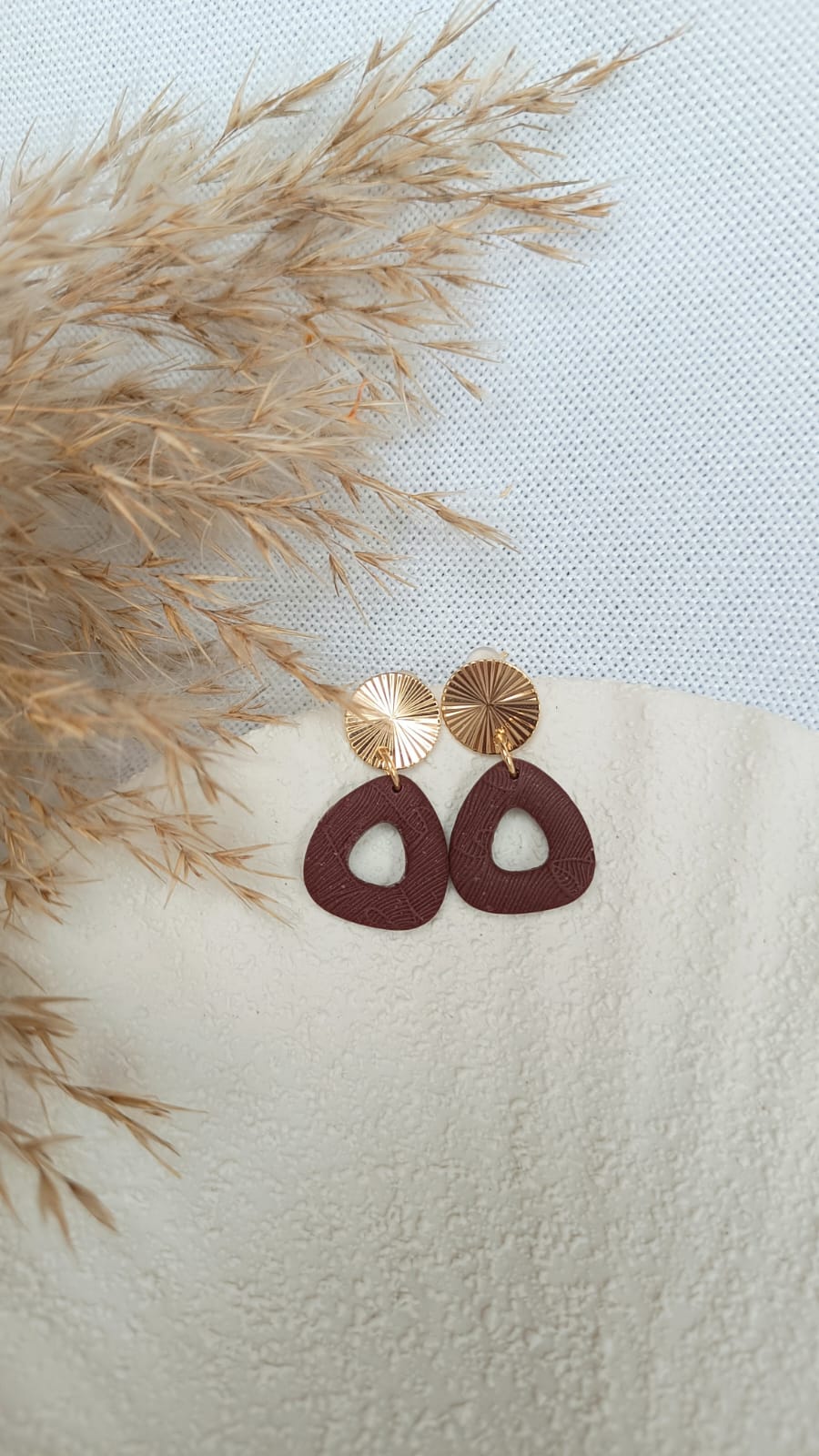 Golden Ember vereint die Wärme des Herbstes mit der Eleganz goldener Akzente. Die tropfenförmigen Anhänger in einem erdigen Braunton zeigen ein zartes Blattmuster – eine Hommage an die Natur, die sich im Herbst in ihrer schönsten Form zeigt. Der goldene Ohrstecker erinnert an die letzten Sonnenstrahlen eines Spätnachmittags.