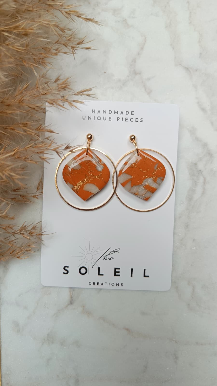 Die Golden Leaves Ohrringe verkörpern die goldene Jahreszeit in ihrer vollen Pracht. Warme Orangetöne treffen auf zarte Weiß- und Goldakzente – wie Sonnenstrahlen, die durch raschelndes Laub fallen.
