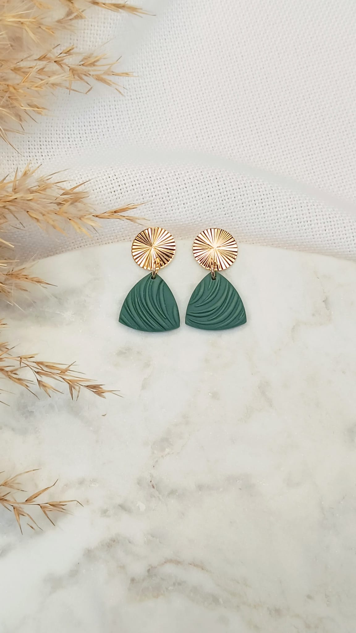 Die Ohrringe Lara sind ein stilvolles Statement – elegant, natürlich und modern zugleich. Die grün strukturierten Elemente erinnern an sanfte Wellen oder Blattadern und bringen Bewegung ins Design. Der goldene, strahlenförmige Stecker verleiht dem Look eine edle, sonnige Note. Perfekt für jeden Tag – oder für genau den einen besonderen Moment.