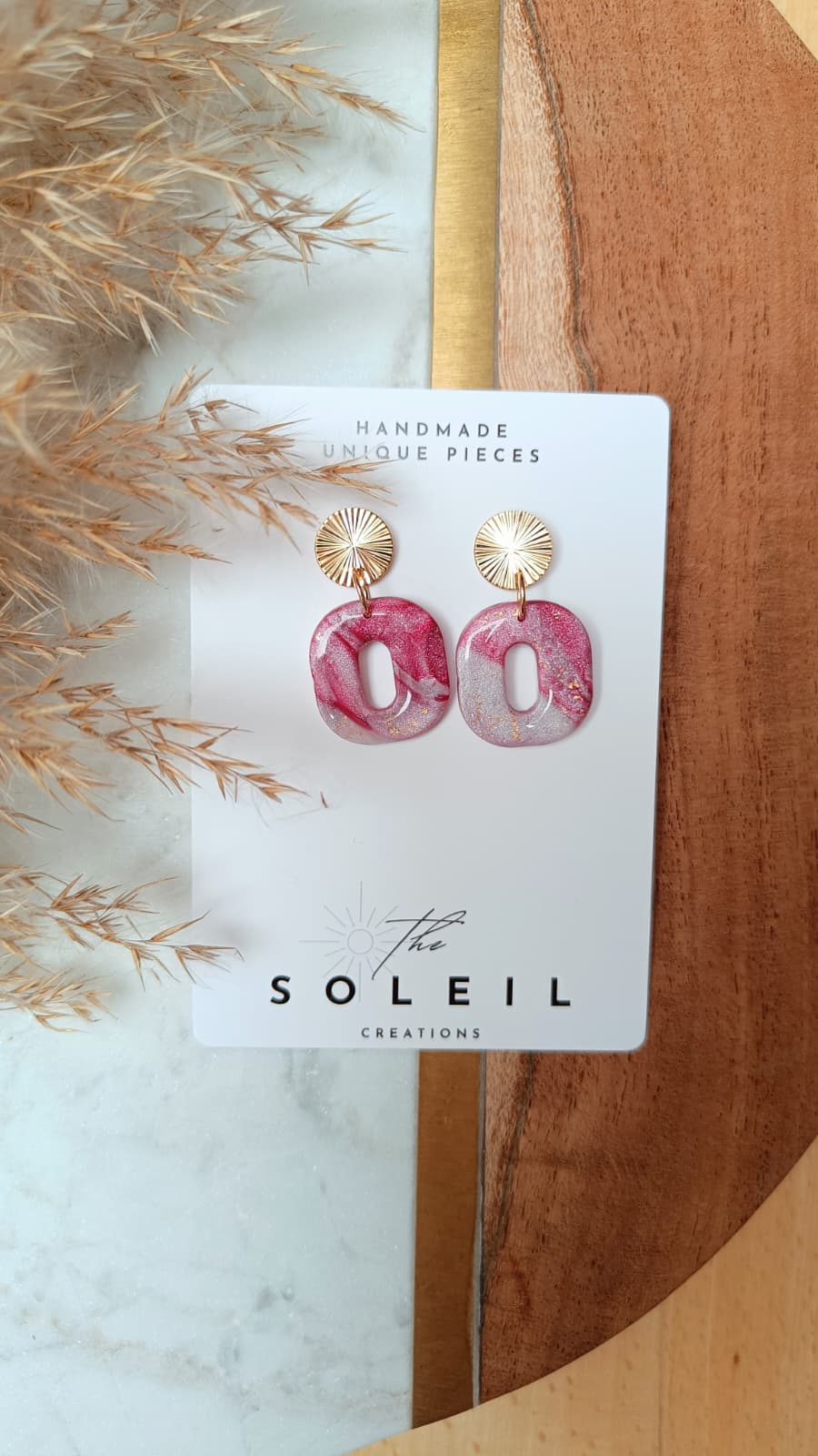 Magenta ist Ausdruck purer Lebenskraft. Die einzigartige Marmorierung in kräftigem Magenta, sanftem Weiß und edlem Goldschimmer macht jedes Paar zu einem leuchtenden Blickfang. Durch die integrierten Glitzerpartikel erhalten die Ohrringe einen feinen Hauch von Glamour – ohne aufdringlich zu wirken.