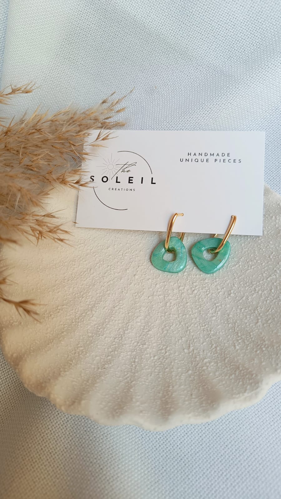 Celadon steht für zarte Leichtigkeit und natürliche Eleganz. Die organisch geformten Anhänger in jadegrünem Schimmer erinnern an sanfte Wellen und frische Frühlingsluft. Das schlichte, aber wirkungsvolle Design macht diese Ohrringe zu einem vielseitigen Begleiter – dezent und doch ein Eyecatcher.