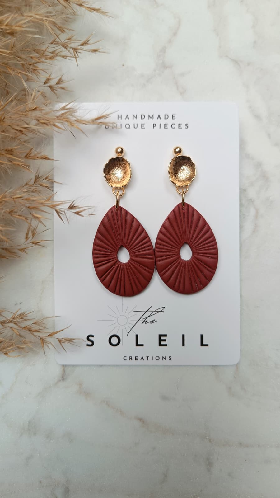 Die Terracotta Bloom Ohrringe sind wie gemacht für den goldenen Herbst. Ihr tiefes Terrakotta-Rot erinnert an fallende Blätter und warme Erdtöne, während das florale Goldelement die letzten Sonnenstrahlen des Jahres einfängt.